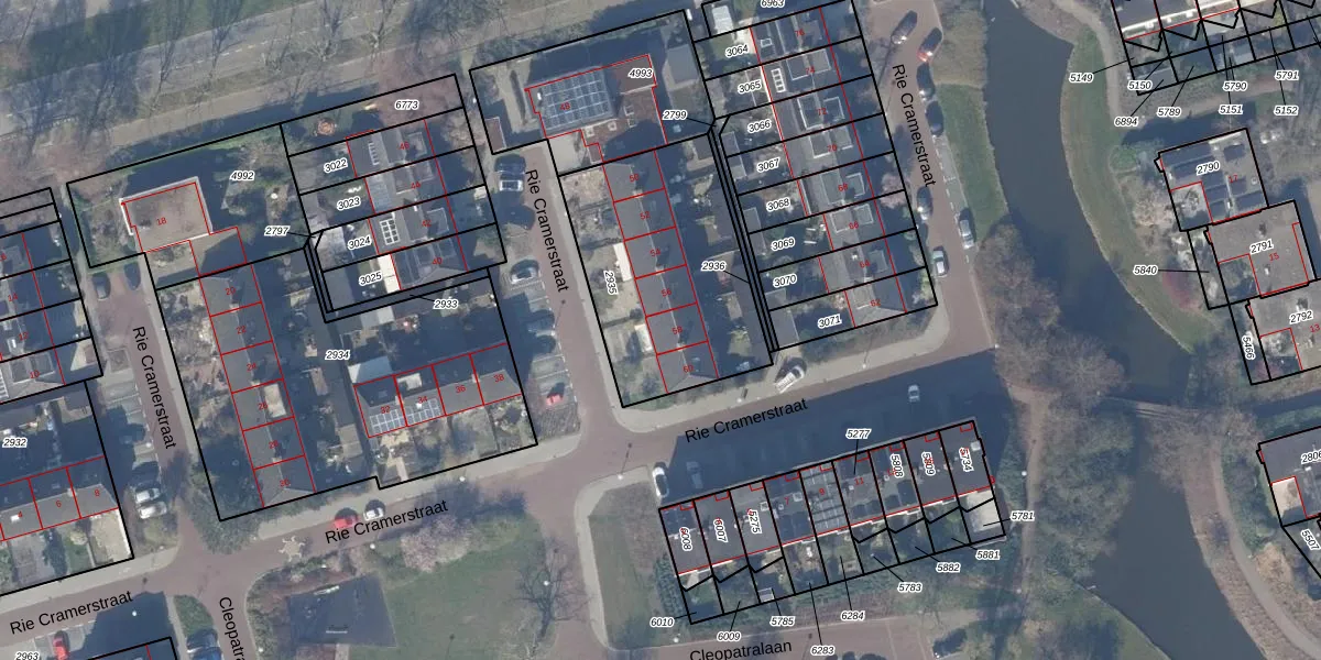 Het perceel waarop Rie Cramerstraat 58 staat heeft een oppervlakte van 857 m². Dit is een groot perceel. De perceeloppervlakte wordt geregistreerd door het Kadaster. Gedetailleerde informatie over de maten van dit perceel kunt u vinden in het rapport Kadastrale kaart met maatvoering van Rie Cramerstraat 58.