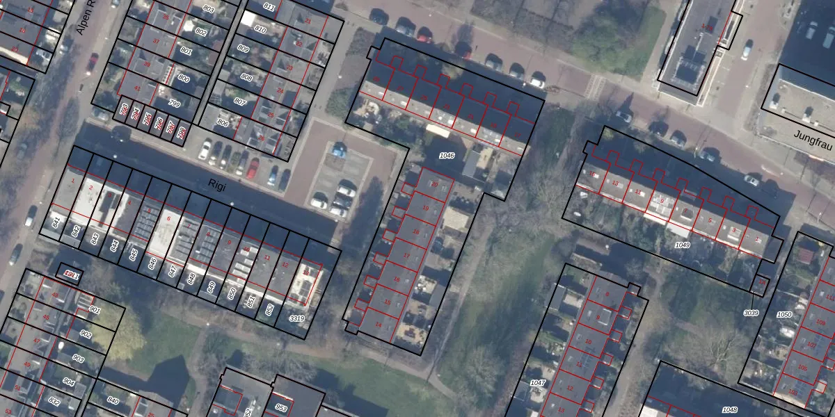 Het perceel waarop Rigi 19 staat heeft een oppervlakte van 1902 m². Dit is een zeer groot perceel. De perceeloppervlakte wordt geregistreerd door het Kadaster. Gedetailleerde informatie over de maten van dit perceel kunt u vinden in het rapport Kadastrale kaart met maatvoering van Rigi 19.