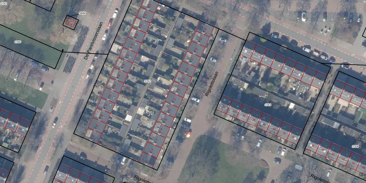 Rigolettolaan 16 is gelegen op kadastraal perceel ASV00I3762. Deze kadastrale aanduiding is uniek en wordt gebruikt door het Kadaster om eigendomsrechten en andere zakelijke rechten vast te leggen. Het perceel maakt onderdeel uit van de kadastrale gemeente Amstelveen.