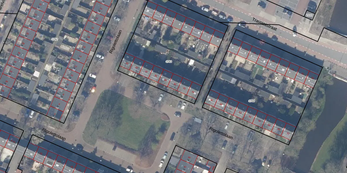Rigolettolaan 40 is gelegen op kadastraal perceel ASV00I3763. Deze kadastrale aanduiding is uniek en wordt gebruikt door het Kadaster om eigendomsrechten en andere zakelijke rechten vast te leggen. Het perceel maakt onderdeel uit van de kadastrale gemeente Amstelveen.
