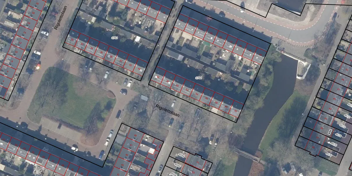 Rigolettolaan 50 is gelegen op kadastraal perceel ASV00I3764. Deze kadastrale aanduiding is uniek en wordt gebruikt door het Kadaster om eigendomsrechten en andere zakelijke rechten vast te leggen. Het perceel maakt onderdeel uit van de kadastrale gemeente Amstelveen.