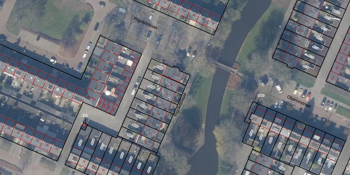Gebruik de zoekbalk of klik op een perceel voor informatie over de adressen binnen dit perceel.