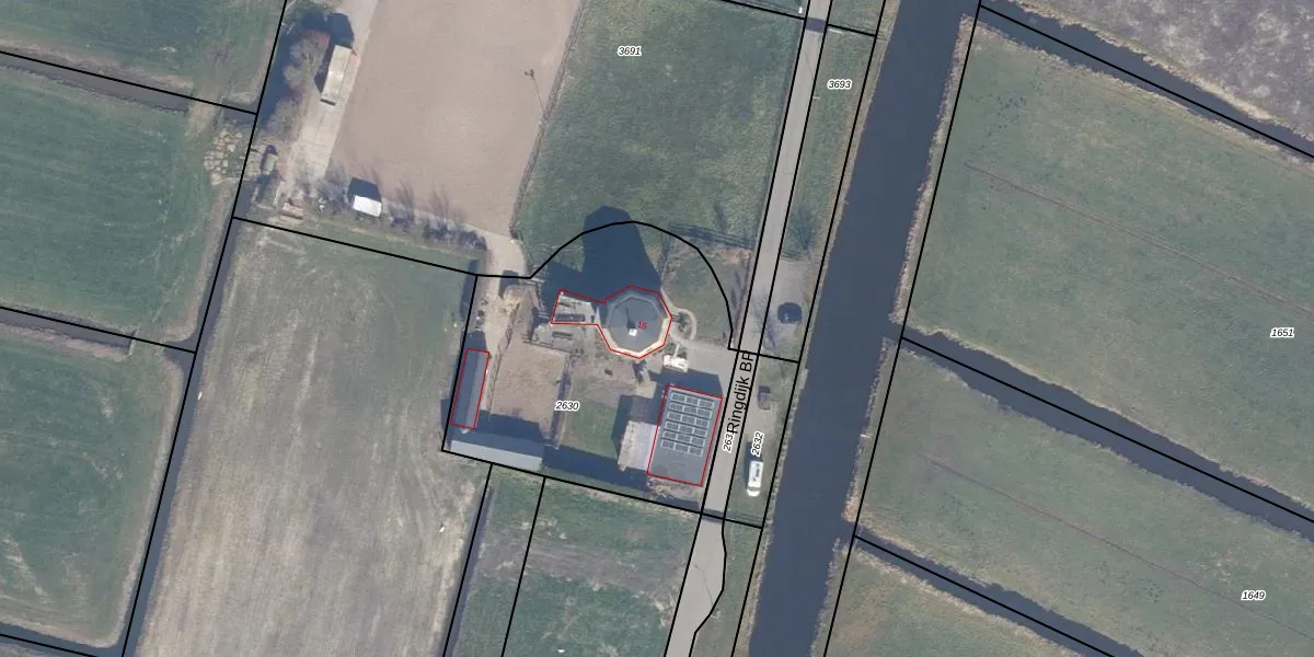 Het perceel waarop Ringdijk BP 15 staat heeft een oppervlakte van 1385 m². Dit is een zeer groot perceel. De perceeloppervlakte wordt geregistreerd door het Kadaster. Gedetailleerde informatie over de maten van dit perceel kunt u vinden in het rapport Kadastrale kaart met maatvoering van Ringdijk BP 15.