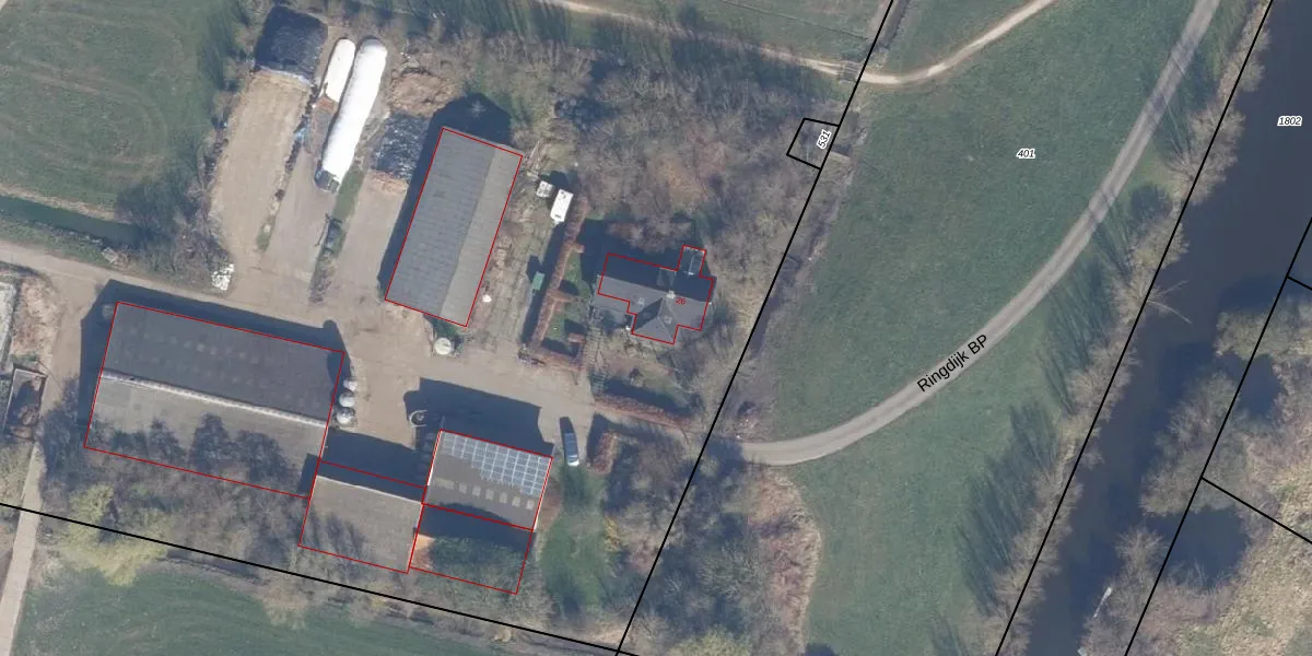 Het perceel waarop Ringdijk BP 26 staat heeft een oppervlakte van 5,9 ha. Dit is een zeer groot perceel. De perceeloppervlakte wordt geregistreerd door het Kadaster. Gedetailleerde informatie over de maten van dit perceel kunt u vinden in het rapport Kadastrale kaart met maatvoering van Ringdijk BP 26.