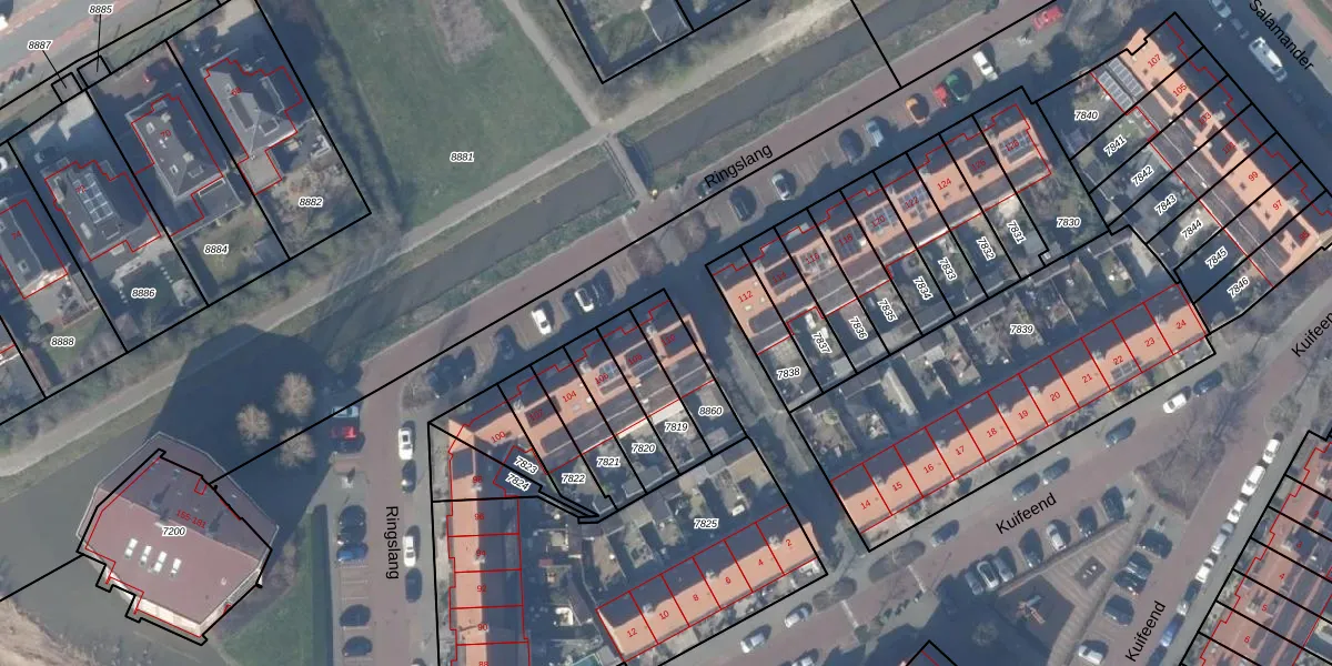 Het perceel waarop Ringslang 110 staat heeft een oppervlakte van 152 m². Dit is een middelgroot perceel. De perceeloppervlakte wordt geregistreerd door het Kadaster. Gedetailleerde informatie over de maten van dit perceel kunt u vinden in het rapport Kadastrale kaart met maatvoering van Ringslang 110.