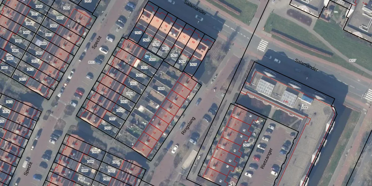 Ringslang 4 is gelegen op kadastraal perceel ASV00O7909. Deze kadastrale aanduiding is uniek en wordt gebruikt door het Kadaster om eigendomsrechten en andere zakelijke rechten vast te leggen. Het perceel maakt onderdeel uit van de kadastrale gemeente Amstelveen.
