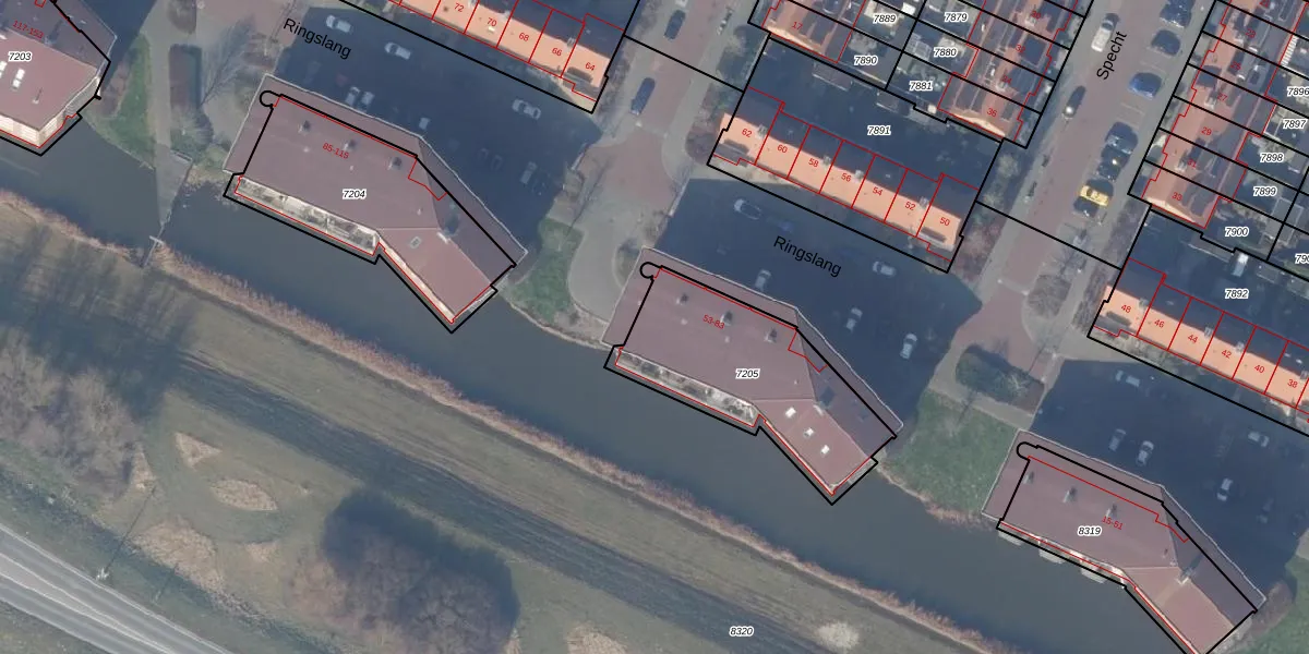 Ringslang 53-A is gelegen op kadastraal perceel ASV00O7205. Deze kadastrale aanduiding is uniek en wordt gebruikt door het Kadaster om eigendomsrechten en andere zakelijke rechten vast te leggen. Het perceel maakt onderdeel uit van de kadastrale gemeente Amstelveen.