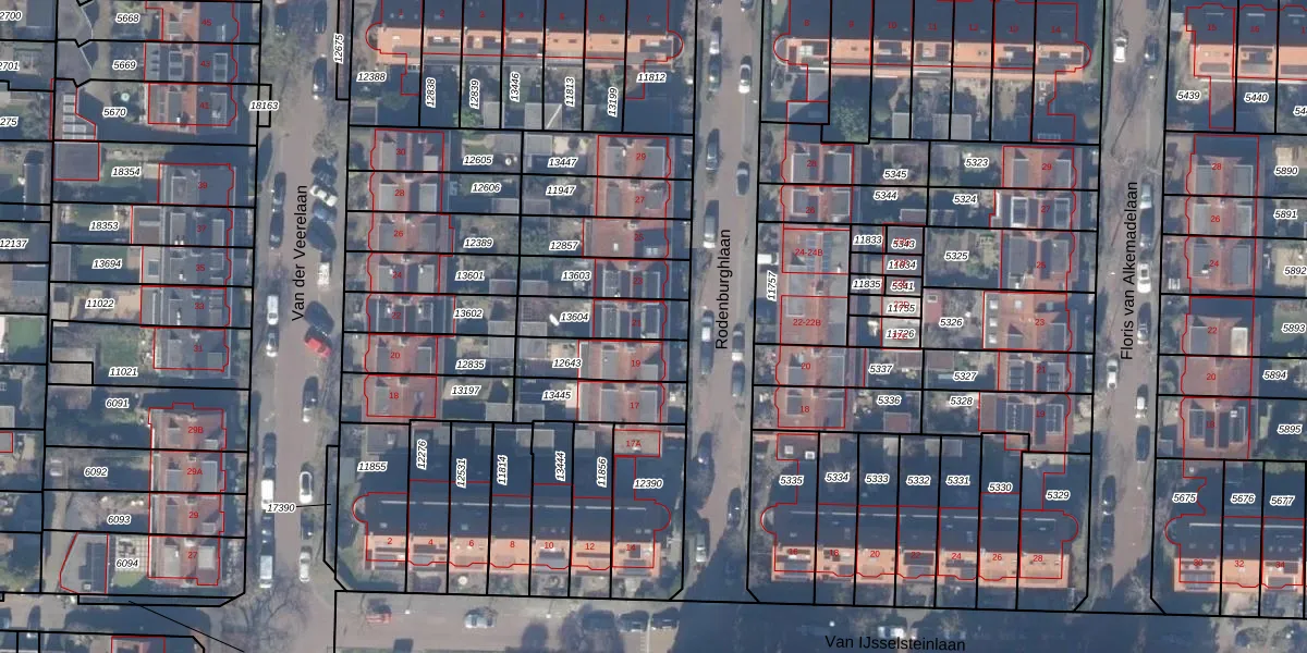 Gebruik de zoekbalk of klik op een perceel voor informatie over de adressen binnen dit perceel.