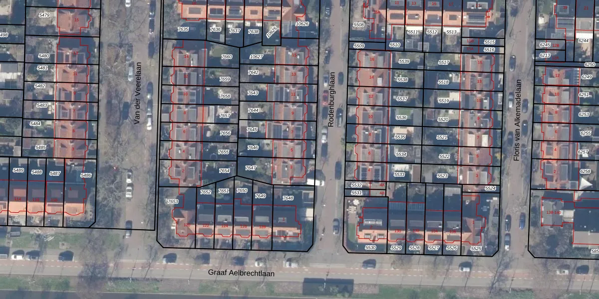 Gebruik de zoekbalk of klik op een perceel voor informatie over de adressen binnen dit perceel.