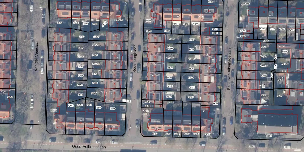 Gebruik de zoekbalk of klik op een perceel voor informatie over de adressen binnen dit perceel.