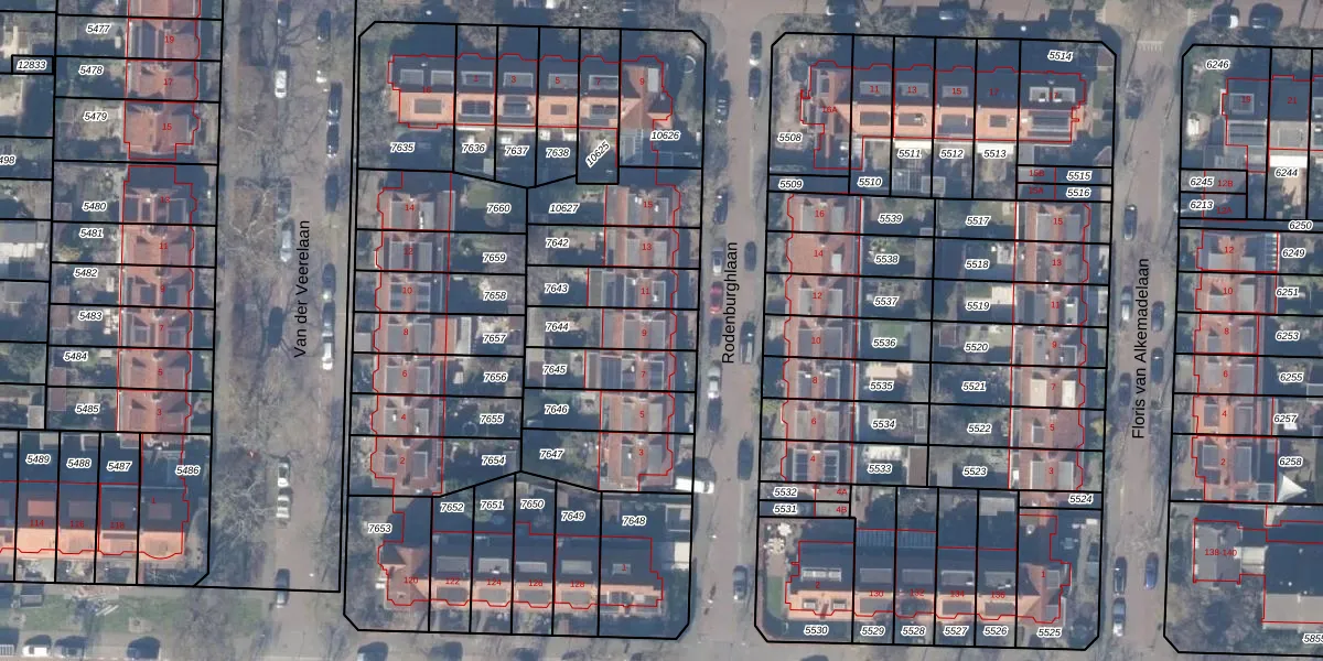 Gebruik de zoekbalk of klik op een perceel voor informatie over de adressen binnen dit perceel.