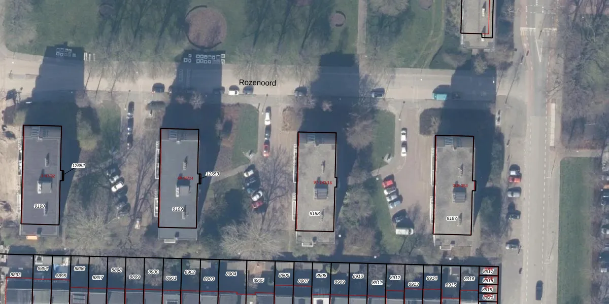 Rozenoord 143-10 is gelegen op kadastraal perceel ASV00H9188. Deze kadastrale aanduiding is uniek en wordt gebruikt door het Kadaster om eigendomsrechten en andere zakelijke rechten vast te leggen. Het perceel maakt onderdeel uit van de kadastrale gemeente Amstelveen.