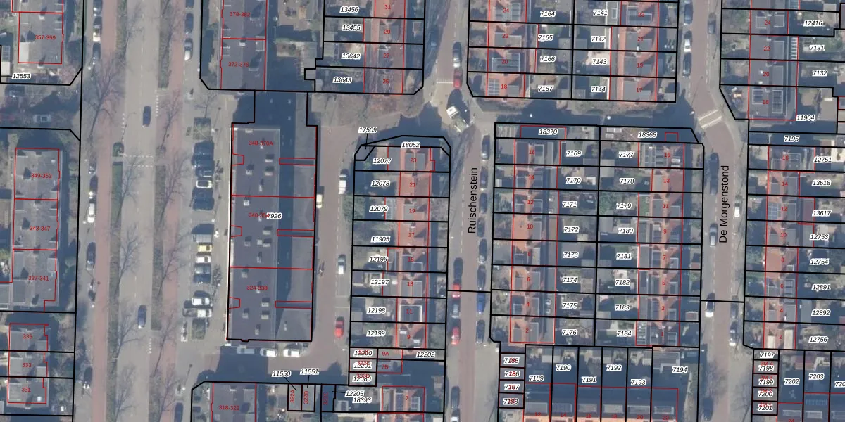 Ruischenstein 19 is gelegen op kadastraal perceel ASV00H12079. Deze kadastrale aanduiding is uniek en wordt gebruikt door het Kadaster om eigendomsrechten en andere zakelijke rechten vast te leggen. Het perceel maakt onderdeel uit van de kadastrale gemeente Amstelveen.