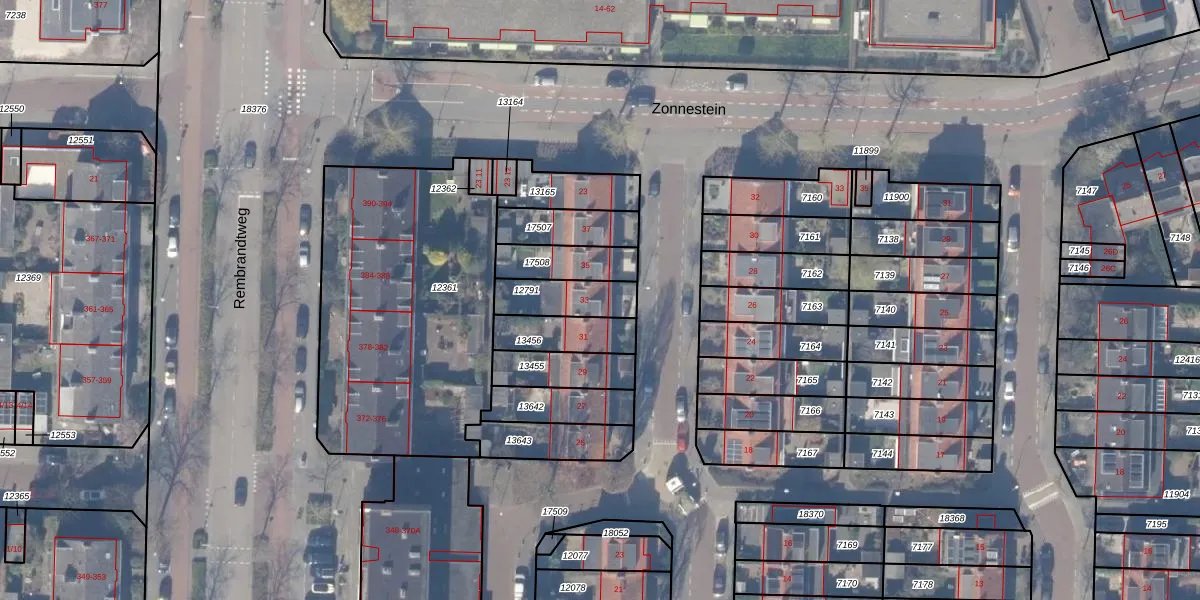 Gebruik de zoekbalk of klik op een perceel voor informatie over de adressen binnen dit perceel.