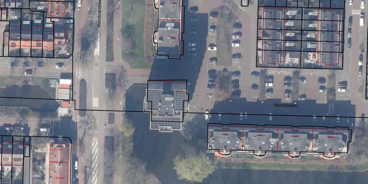 Het perceel waarop Runmoolen 49 staat heeft een oppervlakte van 437 m². Dit is een groot perceel. De perceeloppervlakte wordt geregistreerd door het Kadaster. Gedetailleerde informatie over de maten van dit perceel kunt u vinden in het rapport Kadastrale kaart met maatvoering van Runmoolen 49.