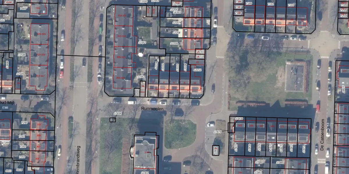 Gebruik de zoekbalk of klik op een perceel voor informatie over de adressen binnen dit perceel.