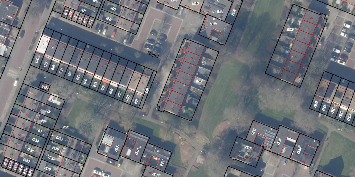Het perceel waarop Rupel 16 staat heeft een oppervlakte van 890 m². Dit is een groot perceel. De perceeloppervlakte wordt geregistreerd door het Kadaster. Gedetailleerde informatie over de maten van dit perceel kunt u vinden in het rapport Kadastrale kaart met maatvoering van Rupel 16.