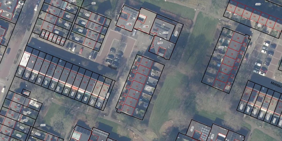 Het perceel waarop Rupel 19 staat heeft een oppervlakte van 890 m². Dit is een groot perceel. De perceeloppervlakte wordt geregistreerd door het Kadaster. Gedetailleerde informatie over de maten van dit perceel kunt u vinden in het rapport Kadastrale kaart met maatvoering van Rupel 19.