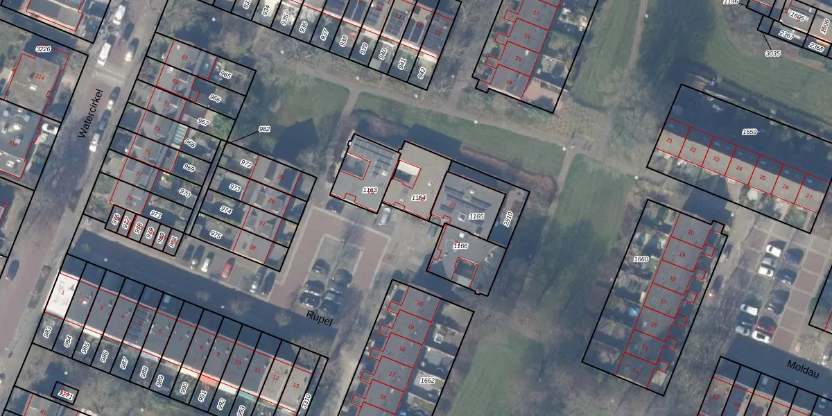 Het perceel waarop Rupel 23 staat heeft een oppervlakte van 190 m². Dit is een middelgroot perceel. De perceeloppervlakte wordt geregistreerd door het Kadaster. Gedetailleerde informatie over de maten van dit perceel kunt u vinden in het rapport Kadastrale kaart met maatvoering van Rupel 23.