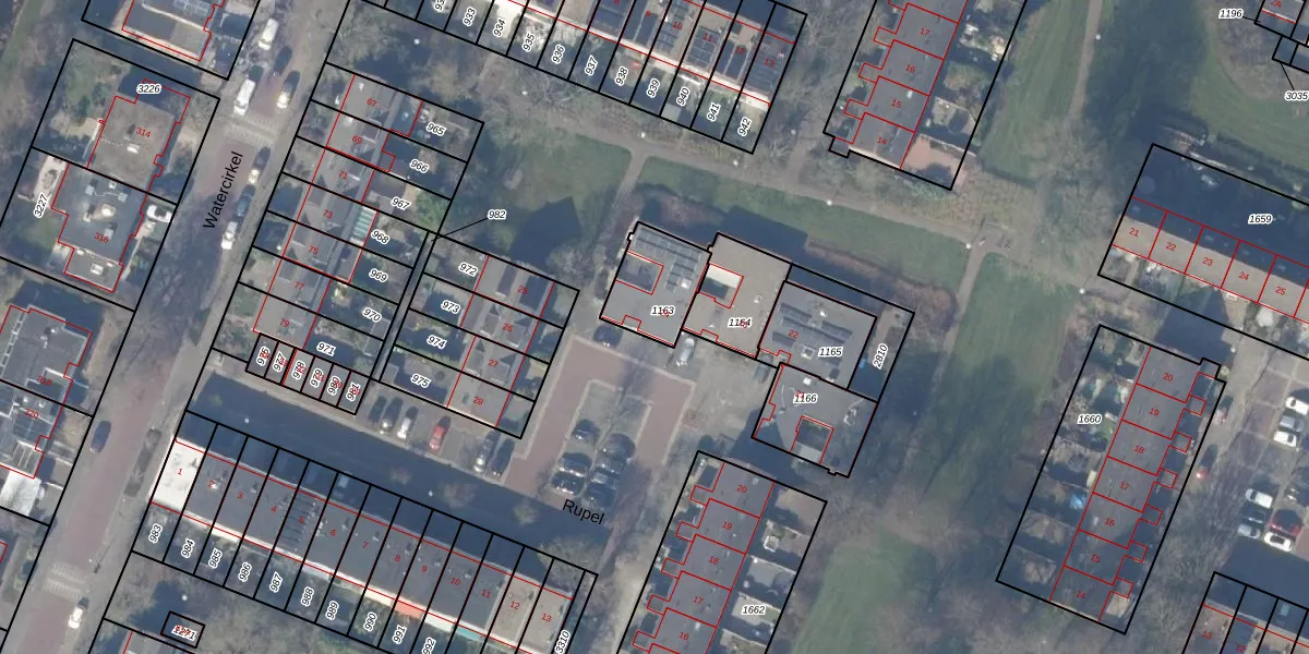 Het perceel waarop Rupel 24 staat heeft een oppervlakte van 192 m². Dit is een middelgroot perceel. De perceeloppervlakte wordt geregistreerd door het Kadaster. Gedetailleerde informatie over de maten van dit perceel kunt u vinden in het rapport Kadastrale kaart met maatvoering van Rupel 24.