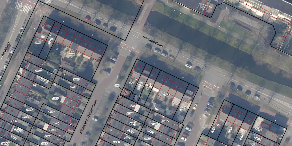 Sacharovlaan 10 is gelegen op kadastraal perceel ASV00O9935. Deze kadastrale aanduiding is uniek en wordt gebruikt door het Kadaster om eigendomsrechten en andere zakelijke rechten vast te leggen. Het perceel maakt onderdeel uit van de kadastrale gemeente Amstelveen.