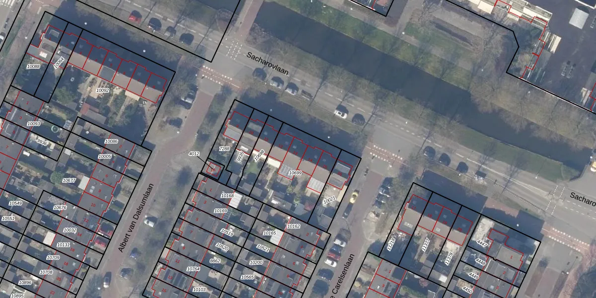 Sacharovlaan 13 is gelegen op kadastraal perceel ASV00O10699. Deze kadastrale aanduiding is uniek en wordt gebruikt door het Kadaster om eigendomsrechten en andere zakelijke rechten vast te leggen. Het perceel maakt onderdeel uit van de kadastrale gemeente Amstelveen.