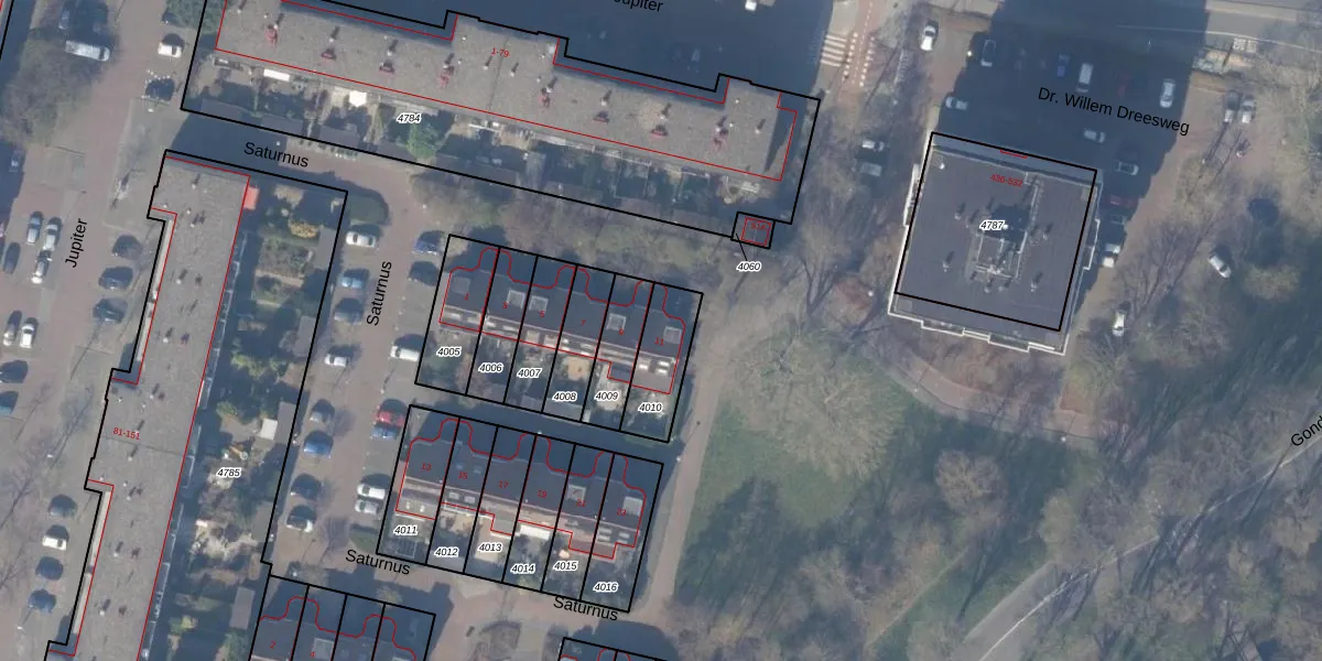 Gebruik de zoekbalk of klik op een perceel voor informatie over de adressen binnen dit perceel.