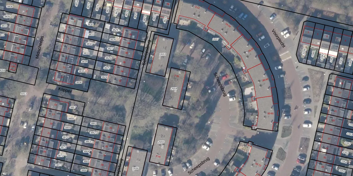 Scheepsbrug 20 is gelegen op kadastraal perceel ASV00L2654. Deze kadastrale aanduiding is uniek en wordt gebruikt door het Kadaster om eigendomsrechten en andere zakelijke rechten vast te leggen. Het perceel maakt onderdeel uit van de kadastrale gemeente Amstelveen.