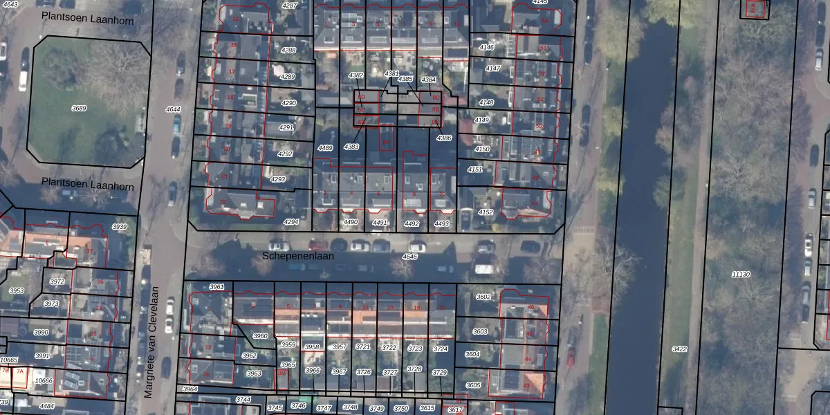Gebruik de zoekbalk of klik op een perceel voor informatie over de adressen binnen dit perceel.