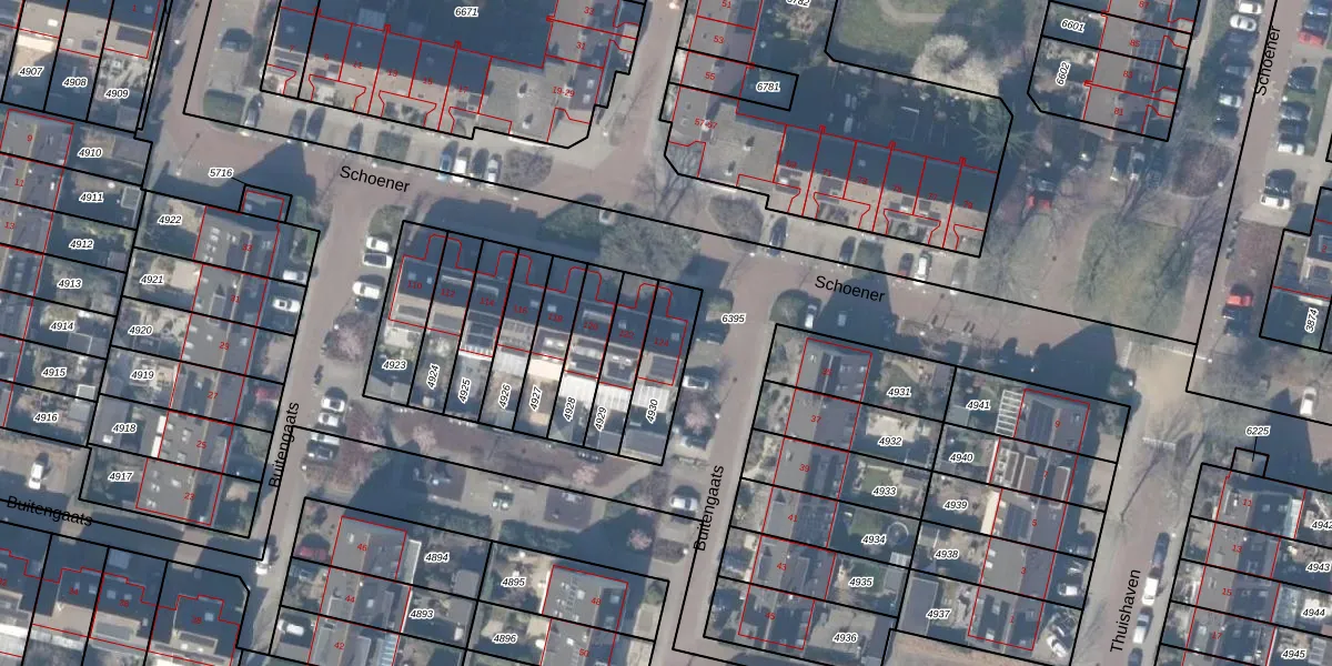 Het perceel waarop Schoener 124 staat heeft een oppervlakte van 185 m². Dit is een middelgroot perceel. De perceeloppervlakte wordt geregistreerd door het Kadaster. Gedetailleerde informatie over de maten van dit perceel kunt u vinden in het rapport Kadastrale kaart met maatvoering van Schoener 124.