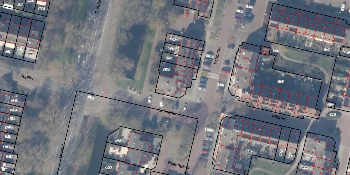 Het perceel waarop Schoener 230 staat heeft een oppervlakte van 349 m². Dit is een groot perceel. De perceeloppervlakte wordt geregistreerd door het Kadaster. Gedetailleerde informatie over de maten van dit perceel kunt u vinden in het rapport Kadastrale kaart met maatvoering van Schoener 230.