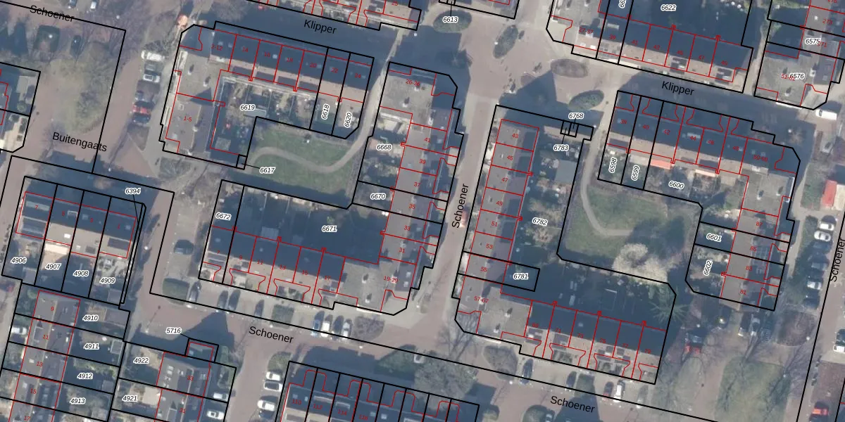 Het perceel waarop Schoener 35 staat heeft een oppervlakte van 120 m². Dit is een middelgroot perceel. De perceeloppervlakte wordt geregistreerd door het Kadaster. Gedetailleerde informatie over de maten van dit perceel kunt u vinden in het rapport Kadastrale kaart met maatvoering van Schoener 35.