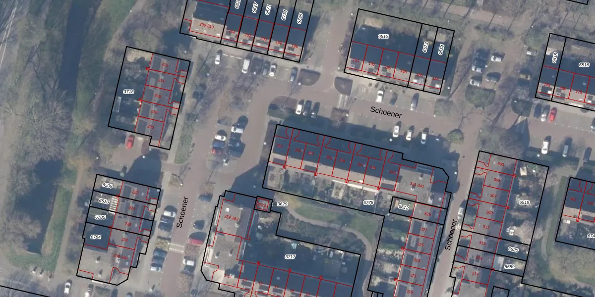 Schoener 355 is gelegen op kadastraal perceel ASV00M6778. Deze kadastrale aanduiding is uniek en wordt gebruikt door het Kadaster om eigendomsrechten en andere zakelijke rechten vast te leggen. Het perceel maakt onderdeel uit van de kadastrale gemeente Amstelveen.