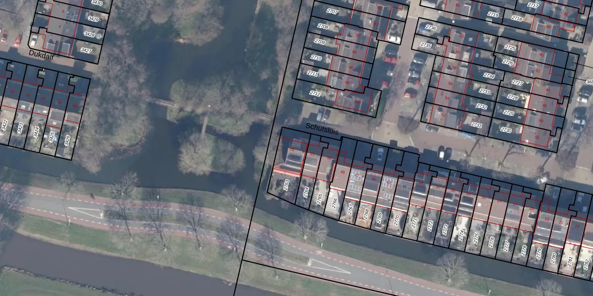 Het perceel waarop Schutsluis 55 staat heeft een oppervlakte van 228 m². Dit is een middelgroot perceel. De perceeloppervlakte wordt geregistreerd door het Kadaster. Gedetailleerde informatie over de maten van dit perceel kunt u vinden in het rapport Kadastrale kaart met maatvoering van Schutsluis 55.
