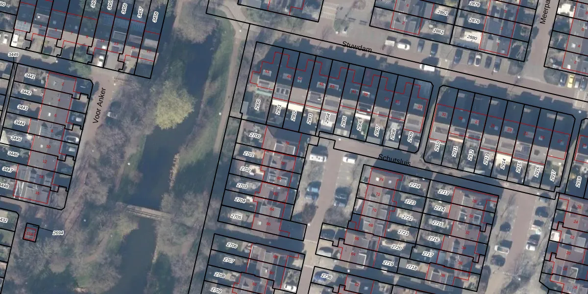 Het perceel waarop Schutsluis 76 staat heeft een oppervlakte van 214 m². Dit is een middelgroot perceel. De perceeloppervlakte wordt geregistreerd door het Kadaster. Gedetailleerde informatie over de maten van dit perceel kunt u vinden in het rapport Kadastrale kaart met maatvoering van Schutsluis 76.