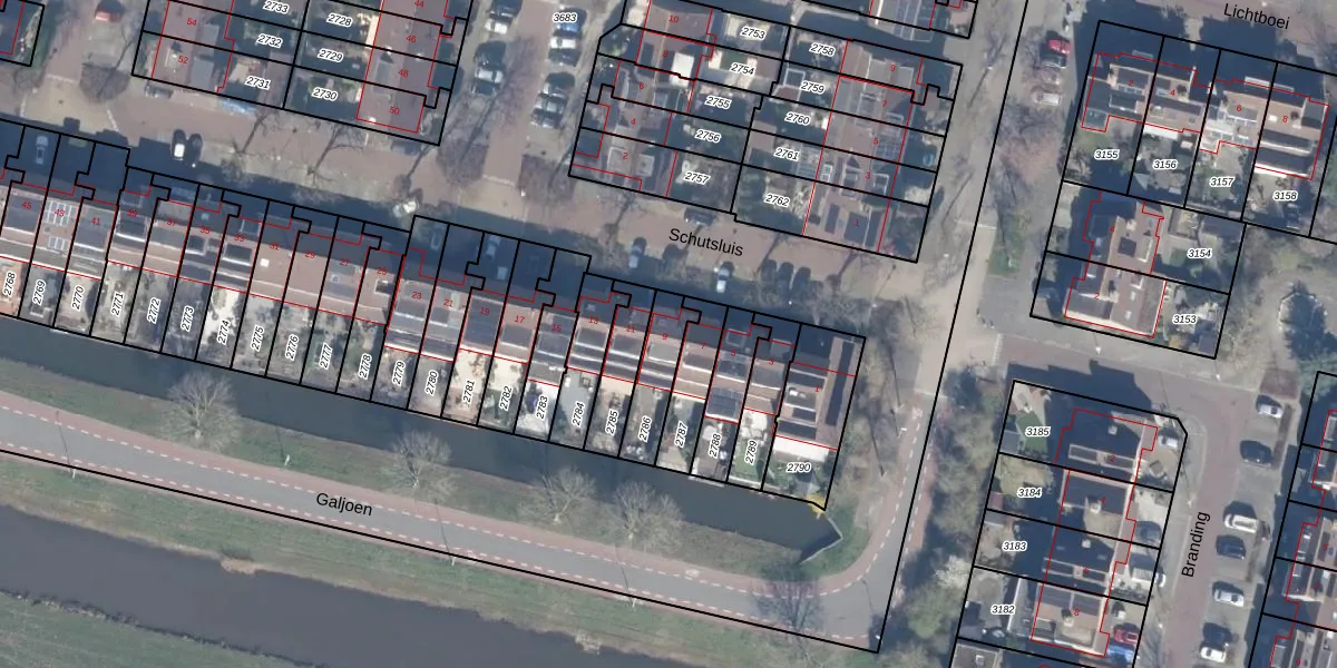 Het perceel waarop Schutsluis 9 staat heeft een oppervlakte van 141 m². Dit is een middelgroot perceel. De perceeloppervlakte wordt geregistreerd door het Kadaster. Gedetailleerde informatie over de maten van dit perceel kunt u vinden in het rapport Kadastrale kaart met maatvoering van Schutsluis 9.