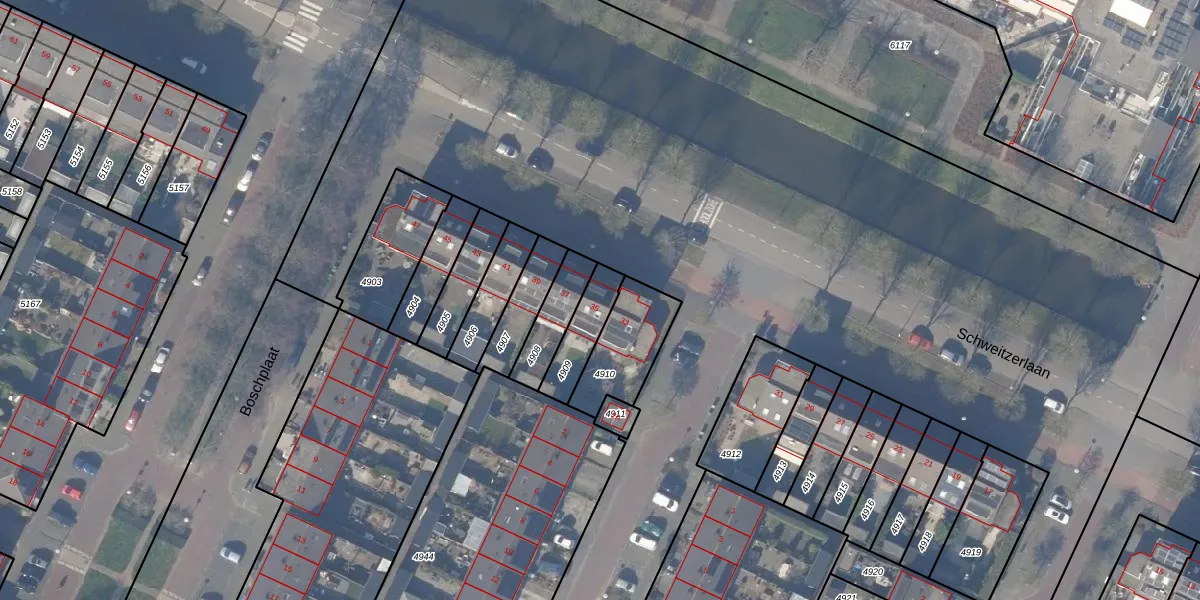 Schweitzerlaan 35 is gelegen op kadastraal perceel ASV00O4909. Deze kadastrale aanduiding is uniek en wordt gebruikt door het Kadaster om eigendomsrechten en andere zakelijke rechten vast te leggen. Het perceel maakt onderdeel uit van de kadastrale gemeente Amstelveen.
