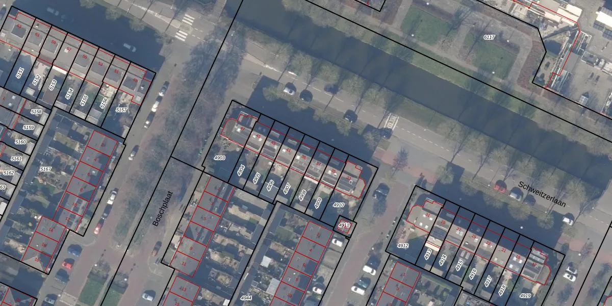 Schweitzerlaan 39 is gelegen op kadastraal perceel ASV00O4907. Deze kadastrale aanduiding is uniek en wordt gebruikt door het Kadaster om eigendomsrechten en andere zakelijke rechten vast te leggen. Het perceel maakt onderdeel uit van de kadastrale gemeente Amstelveen.