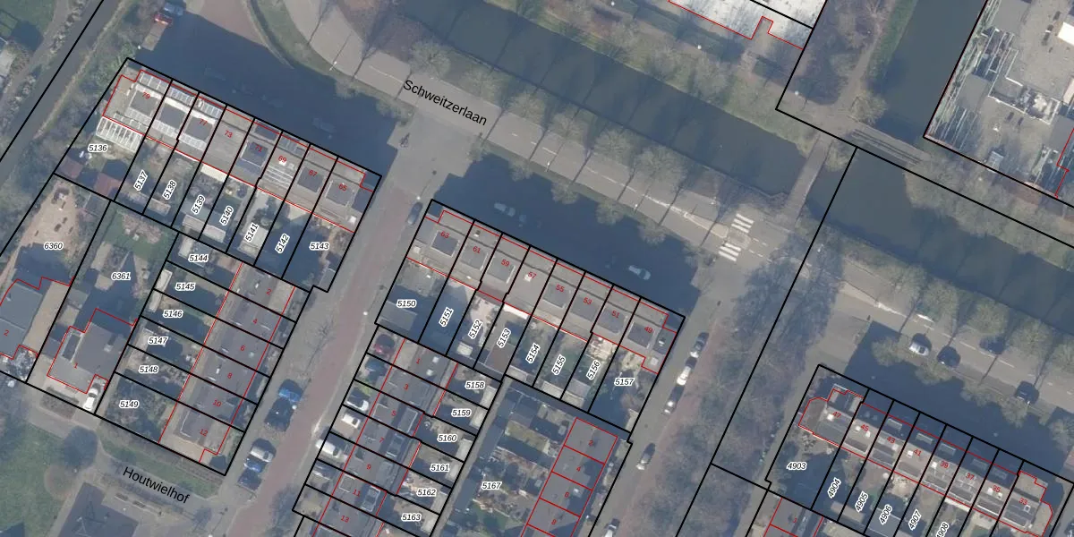Gebruik de zoekbalk of klik op een perceel voor informatie over de adressen binnen dit perceel.