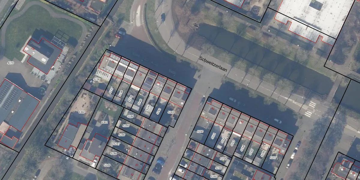 Schweitzerlaan 65 is gelegen op kadastraal perceel ASV00O5143. Deze kadastrale aanduiding is uniek en wordt gebruikt door het Kadaster om eigendomsrechten en andere zakelijke rechten vast te leggen. Het perceel maakt onderdeel uit van de kadastrale gemeente Amstelveen.