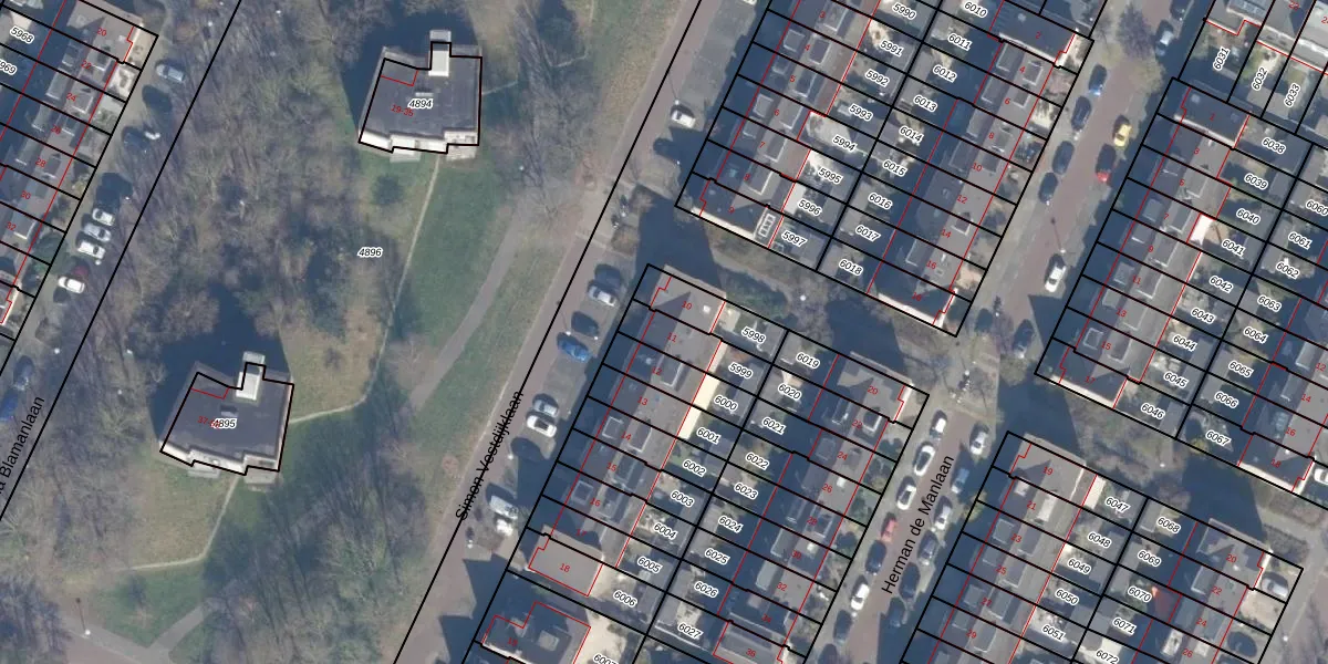 Gebruik de zoekbalk of klik op een perceel voor informatie over de adressen binnen dit perceel.