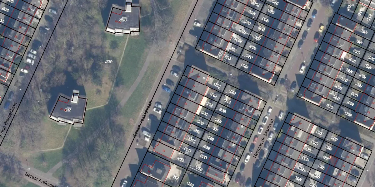Gebruik de zoekbalk of klik op een perceel voor informatie over de adressen binnen dit perceel.