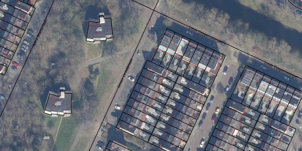 Gebruik de zoekbalk of klik op een perceel voor informatie over de adressen binnen dit perceel.
