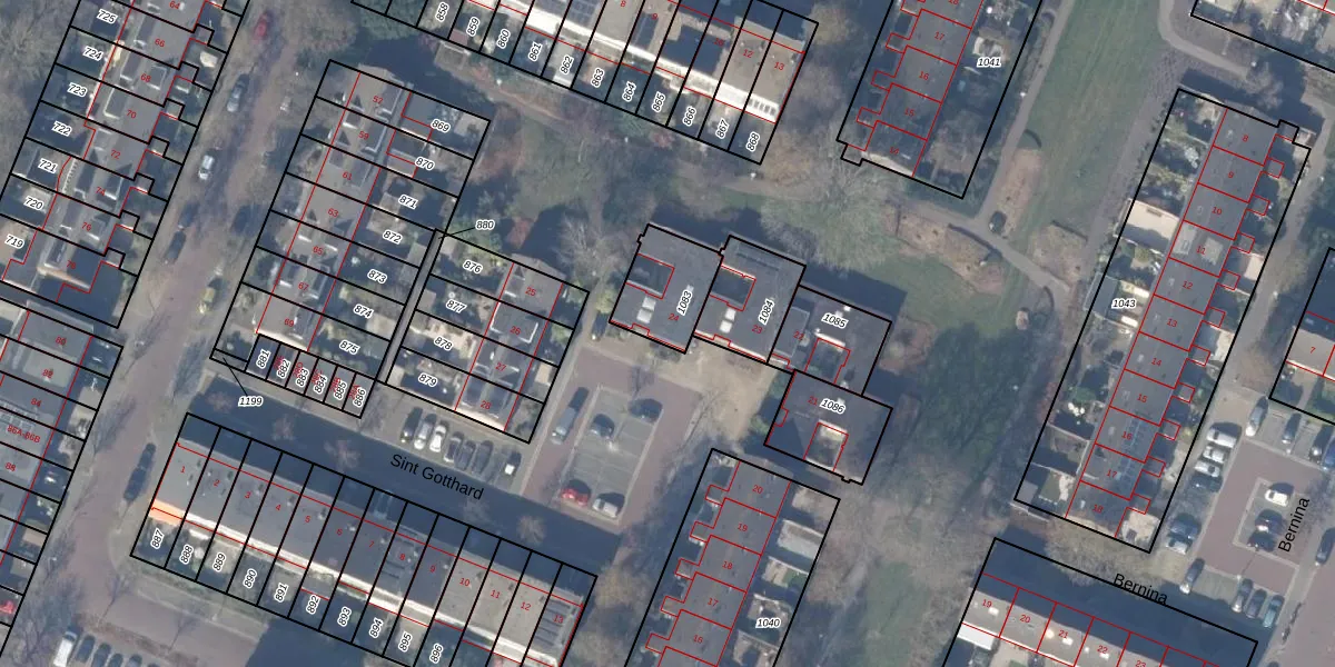 Het perceel waarop Sint Gotthard 24 staat heeft een oppervlakte van 194 m². Dit is een middelgroot perceel. De perceeloppervlakte wordt geregistreerd door het Kadaster. Gedetailleerde informatie over de maten van dit perceel kunt u vinden in het rapport Kadastrale kaart met maatvoering van Sint Gotthard 24.