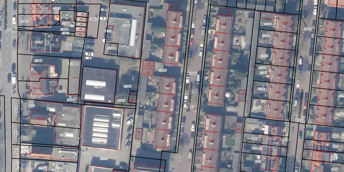 Sint Josephlaan 21 is gelegen op kadastraal perceel ASV00H10596. Deze kadastrale aanduiding is uniek en wordt gebruikt door het Kadaster om eigendomsrechten en andere zakelijke rechten vast te leggen. Het perceel maakt onderdeel uit van de kadastrale gemeente Amstelveen.