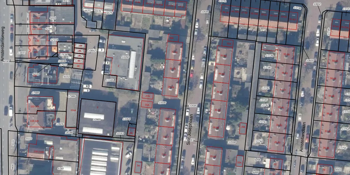 Sint Josephlaan 25 is gelegen op kadastraal perceel ASV00H10596. Deze kadastrale aanduiding is uniek en wordt gebruikt door het Kadaster om eigendomsrechten en andere zakelijke rechten vast te leggen. Het perceel maakt onderdeel uit van de kadastrale gemeente Amstelveen.