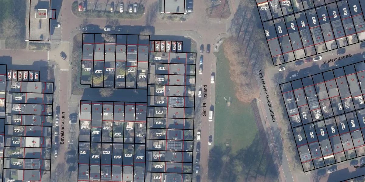 Gebruik de zoekbalk of klik op een perceel voor informatie over de adressen binnen dit perceel.