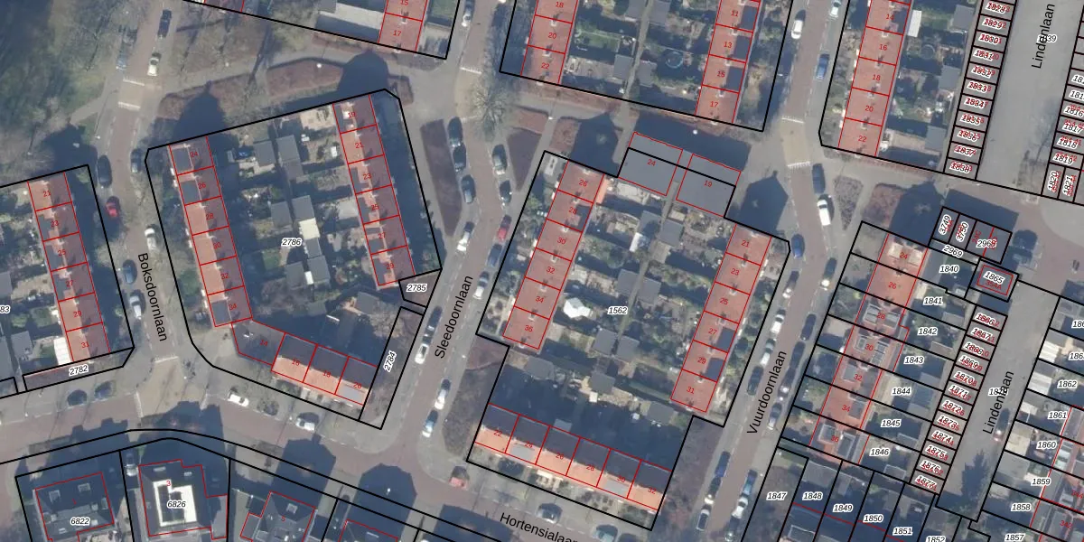 Het perceel waarop Sleedoornlaan 32 staat heeft een oppervlakte van 2710 m². Dit is een zeer groot perceel. De perceeloppervlakte wordt geregistreerd door het Kadaster. Gedetailleerde informatie over de maten van dit perceel kunt u vinden in het rapport Kadastrale kaart met maatvoering van Sleedoornlaan 32.