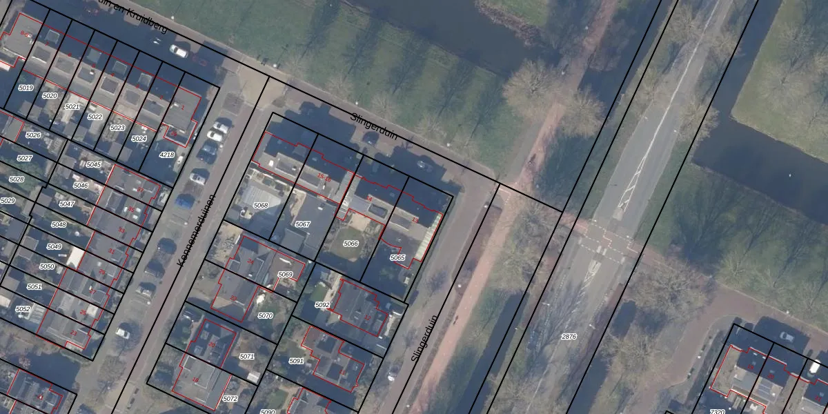 Slingerduin 13 is gelegen op kadastraal perceel ASV00O5065. Deze kadastrale aanduiding is uniek en wordt gebruikt door het Kadaster om eigendomsrechten en andere zakelijke rechten vast te leggen. Het perceel maakt onderdeel uit van de kadastrale gemeente Amstelveen.