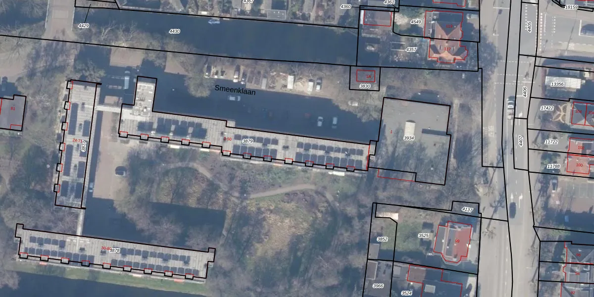 Het perceel waarop Smeenklaan 15 staat heeft een oppervlakte van 865 m². Dit is een groot perceel. De perceeloppervlakte wordt geregistreerd door het Kadaster. Gedetailleerde informatie over de maten van dit perceel kunt u vinden in het rapport Kadastrale kaart met maatvoering van Smeenklaan 15.